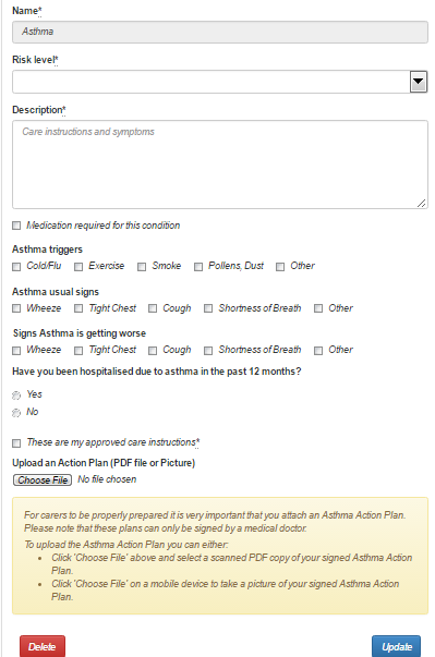 6. Other Conditions/Disabilities - here is where you can add information about a medical condition that is not present in the Medical Conditions section. To get the entire list of what is listed here, please check this spreadsheet.