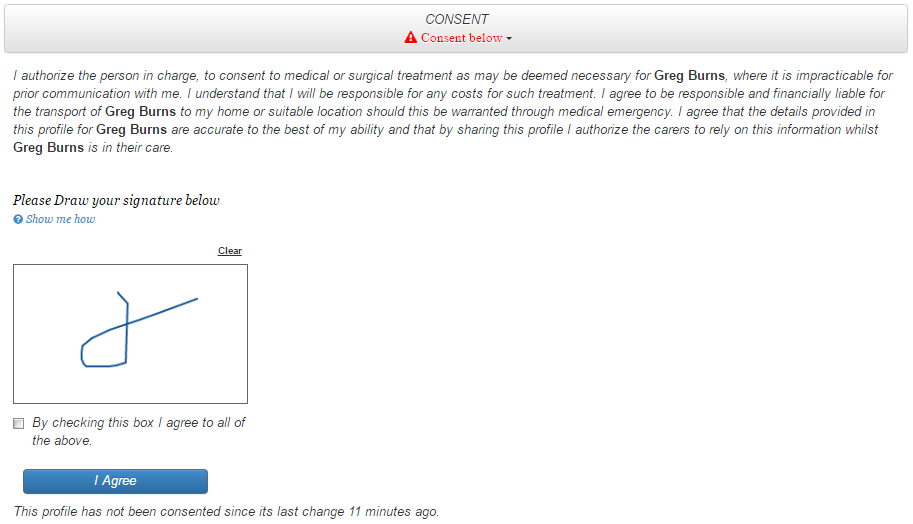 NOTE: "Additional Group Questions" section might be present if the organisation requires the Care Profile Owner to answer other questions that are not included in the CareMonkey form.