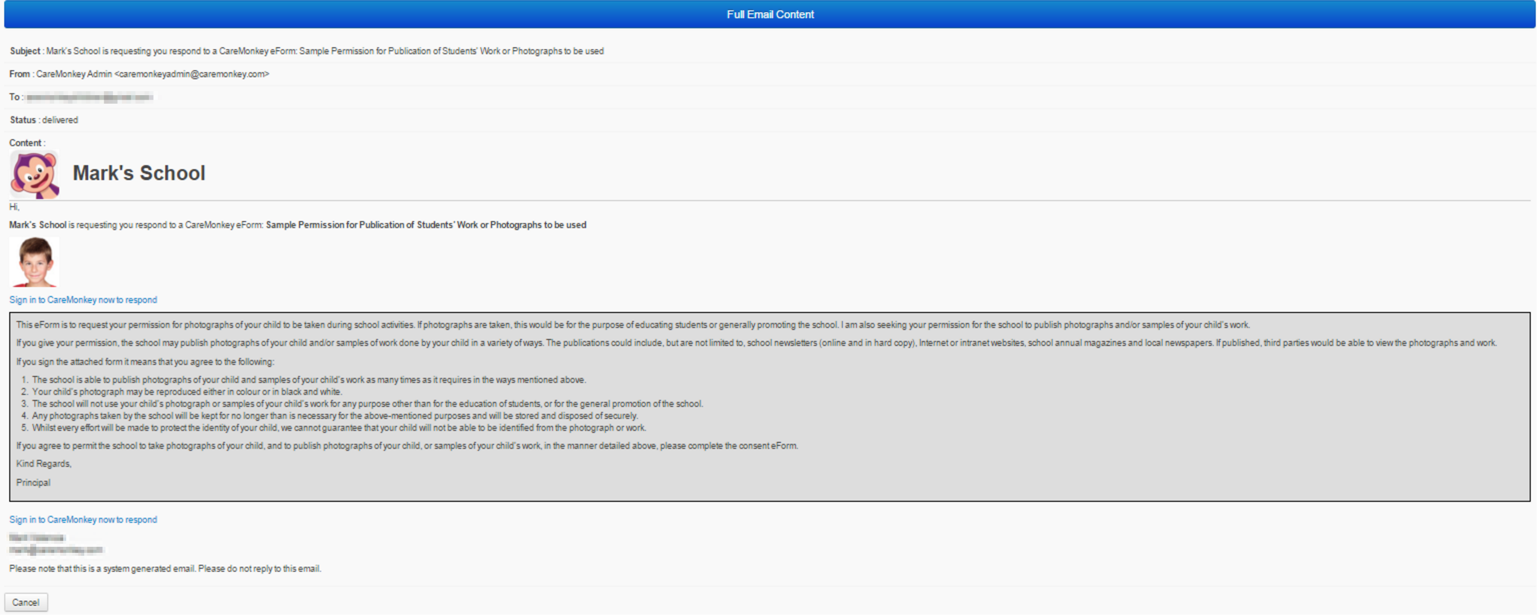 Communications that Care Profile owners (i.e., parents, club members, adult participants, employees, etc.) receive from your organisation can be seen in the Audit Trail.