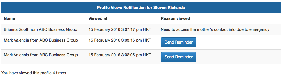 As the profile owner, you will have full visibility of who accessed the private information, when they accessed it, and the reason they provided for accessing it.