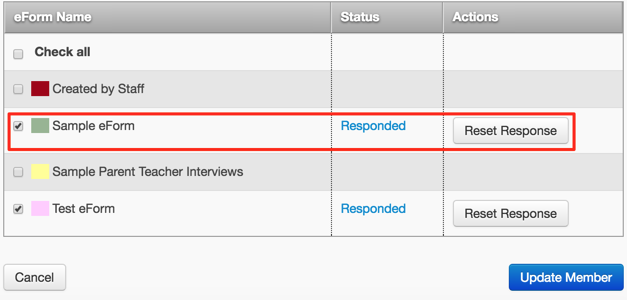 5. Click on Reset Response Response. You may click Update Member if you'd like to inform the carer of the changes you've made.